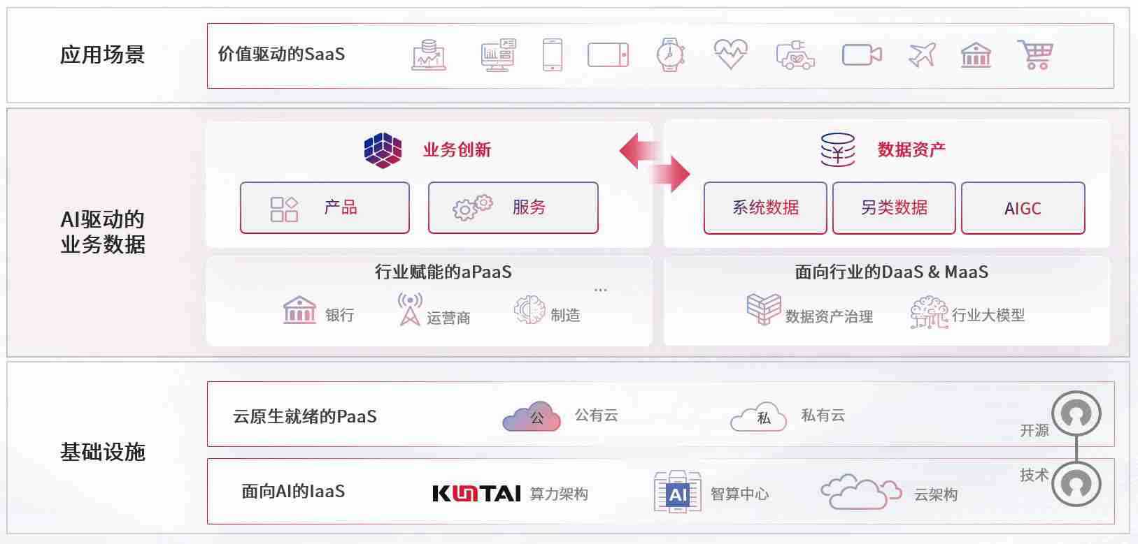 数字时代,,,围绕企业数字化转型的关键要素,,,J9.COM数码开创性的提出数云融合战略和技术体系框架,,,着力在云原生、、、、数字原生、、AI原生和信创产业上架构产品和服务能力,,,,为处在不同数字化转型阶段的快消零售、、汽车、、、金融、、、、医疗、、、、政企、、、、教育、、运营商等行业客户提供泛在的敏捷IT能力和融合的数据驱动能力,,,构建跨界融合创新的数字业务场景和新业务模式,,助力企业级客户建立面向未来的核心能力和竞争优势,,全面推动社会的数字化、、、智能化转型升级。。。